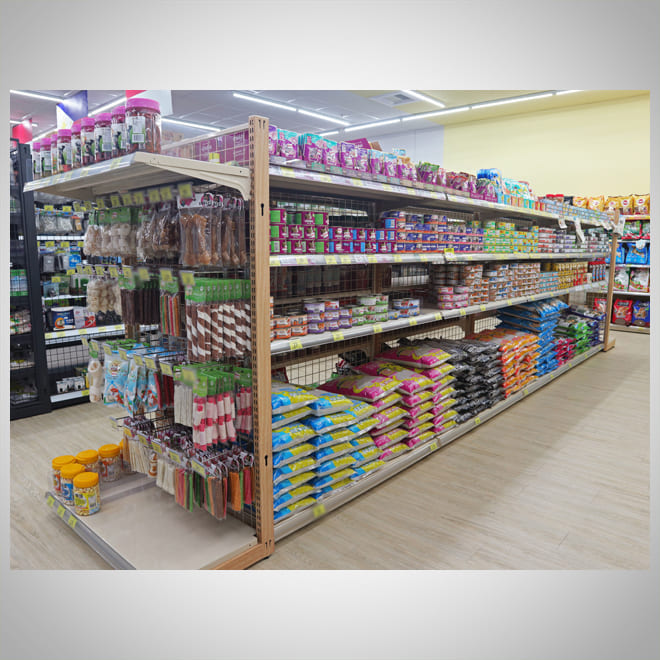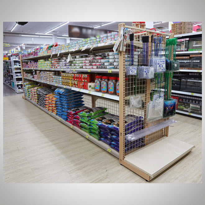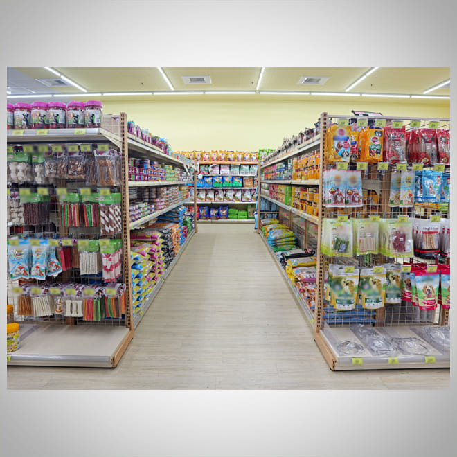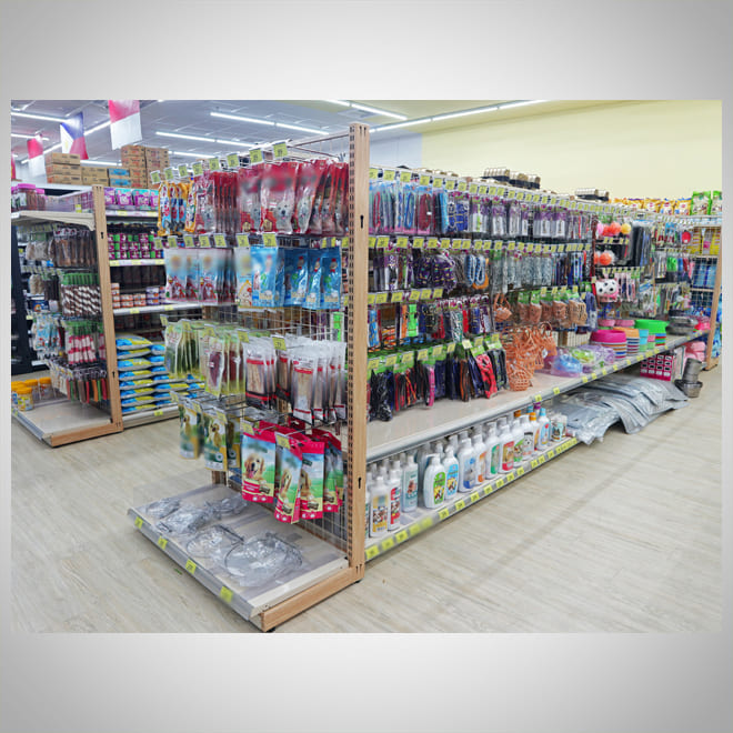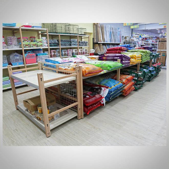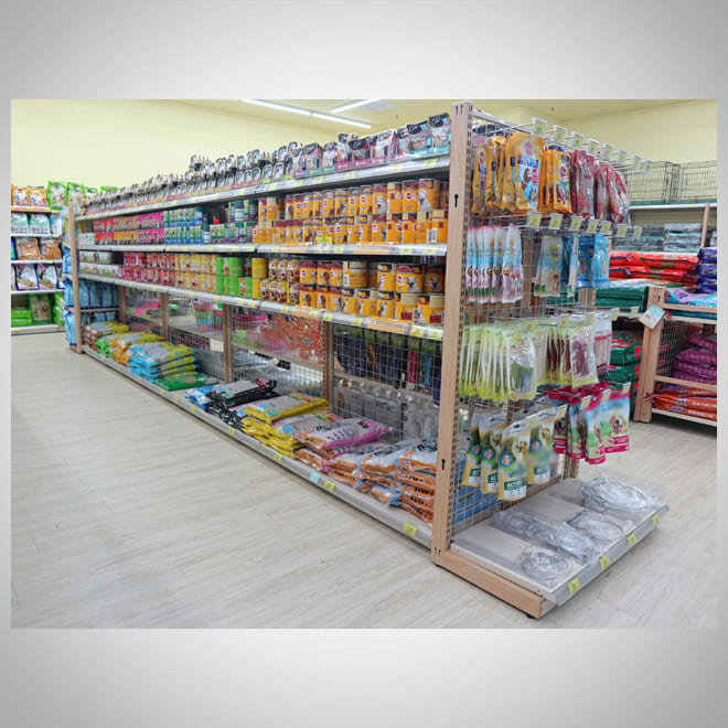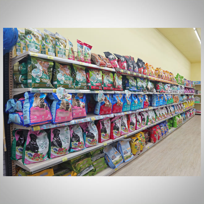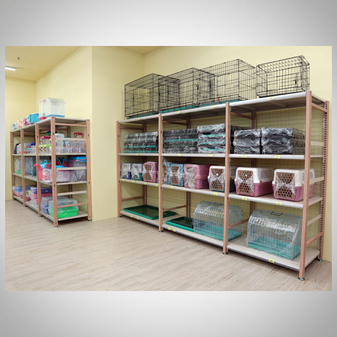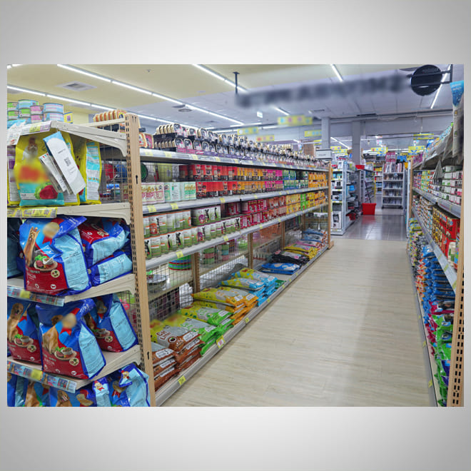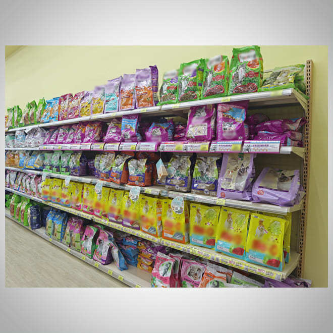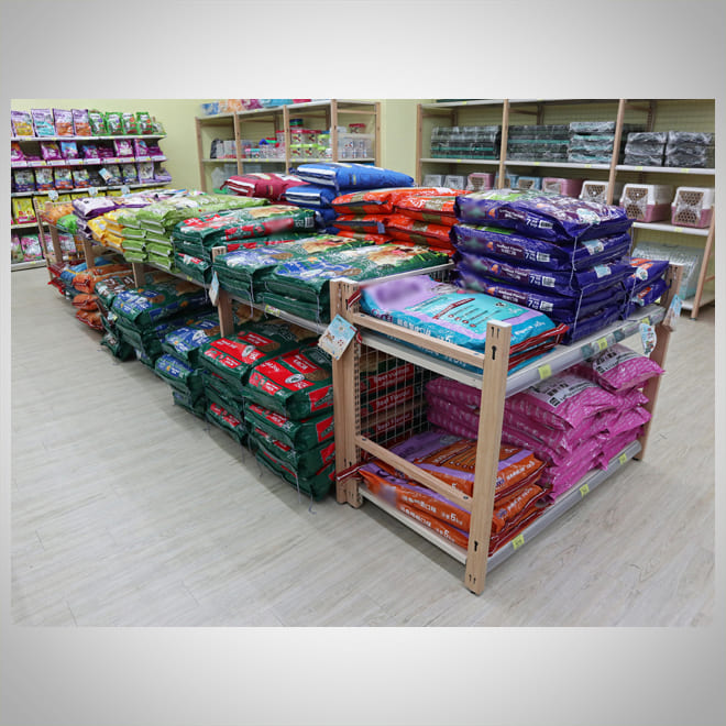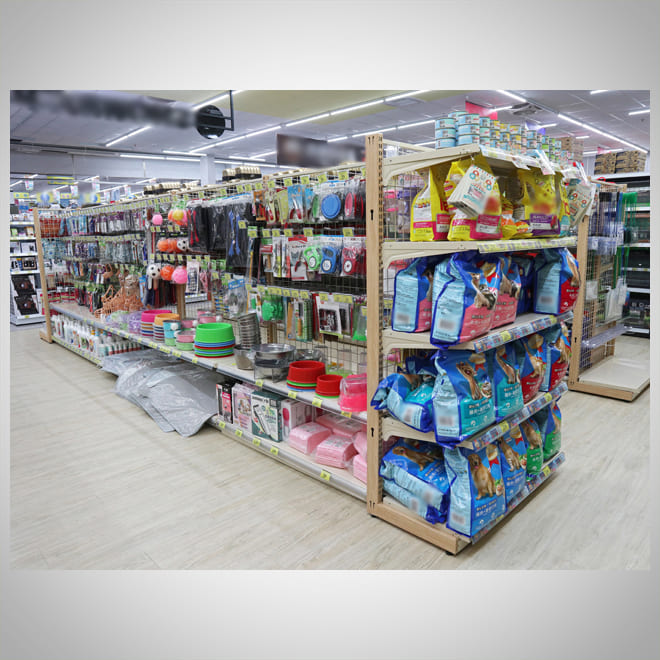 A famous living mart with pet items display rack in Tainan, Taiwan.