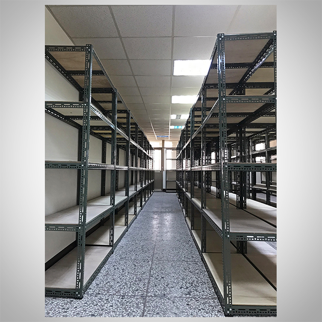 Angle steel rack for warehouse space, could be arranged by dimension.
