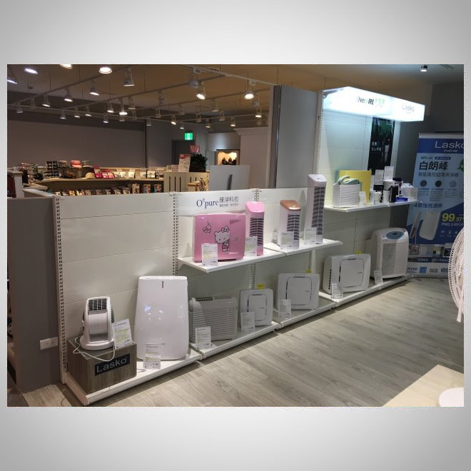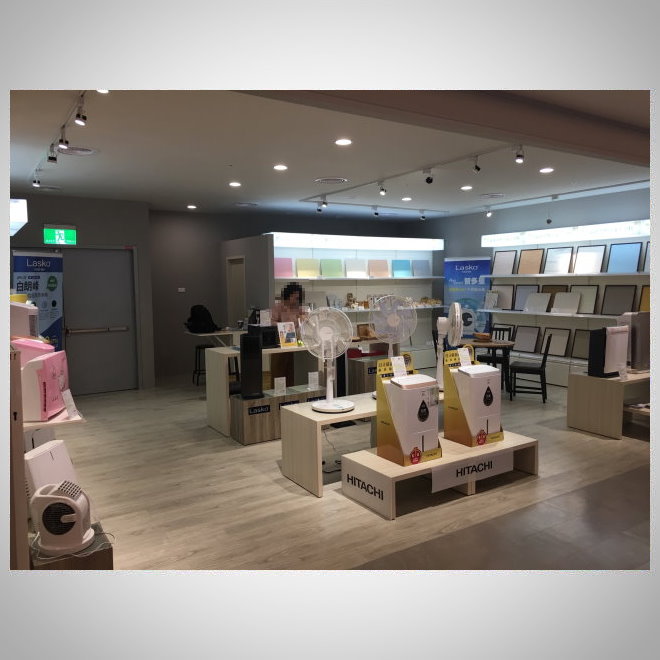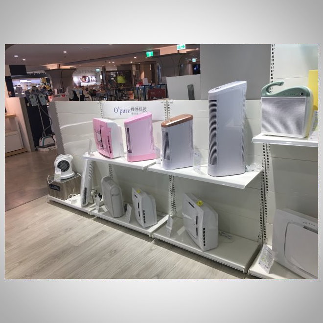 A household appliances counter in a department store.