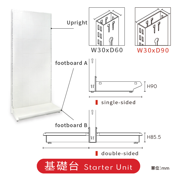 Depth of rack(single-sided): 365mm, 415mm, 485mm, 565mm, 615mm, 665mm