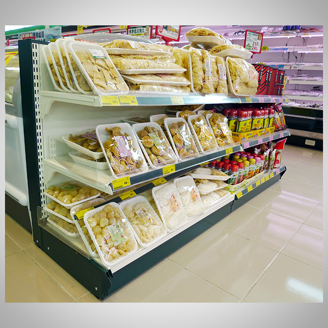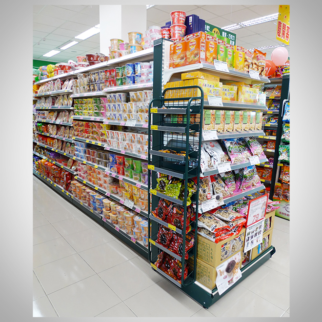 案例介紹:知名連鎖生鮮超市,台中青海店 連鎖超市的貨架整齊有序,配有明亮照明,標示清晰,採用多層次設計,方便顧客選購。 當然搭配企業色系也是很重要的一環歐!! 生鮮超市一年到頭還會搭配不同活動及節日特設推廣區域展示促銷商品,冷藏區域提供冷凍商品。並設有螢幕顯示商品資訊,營造方便且吸引的購物環境。