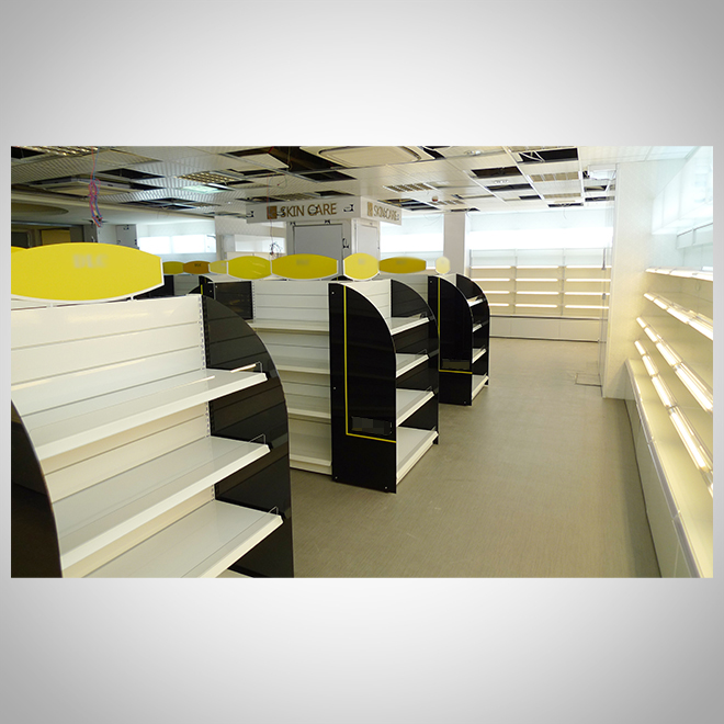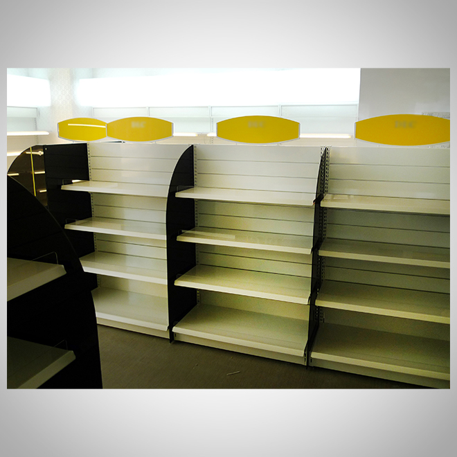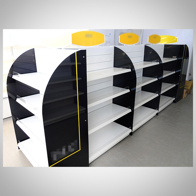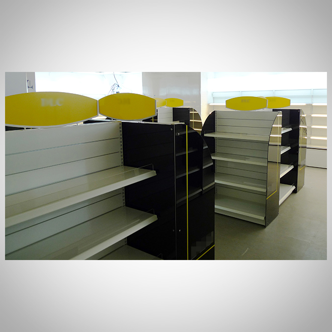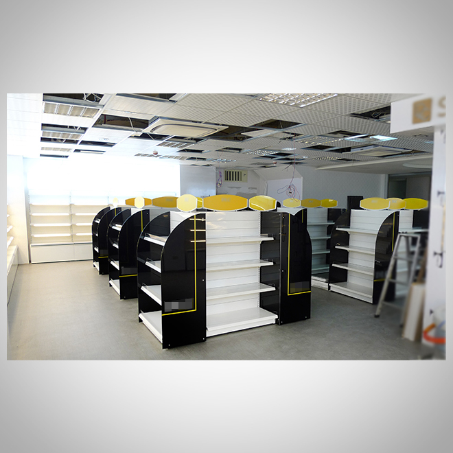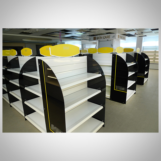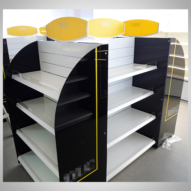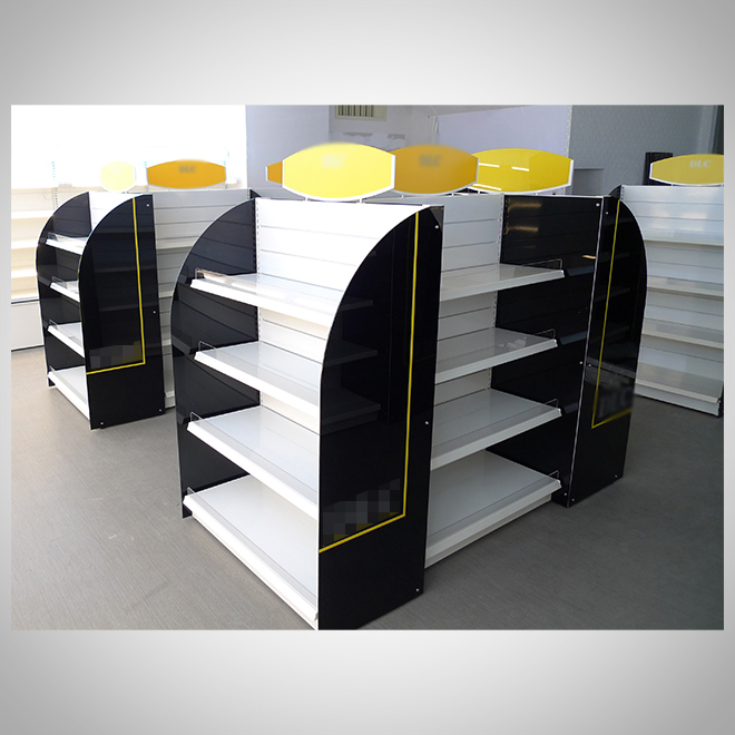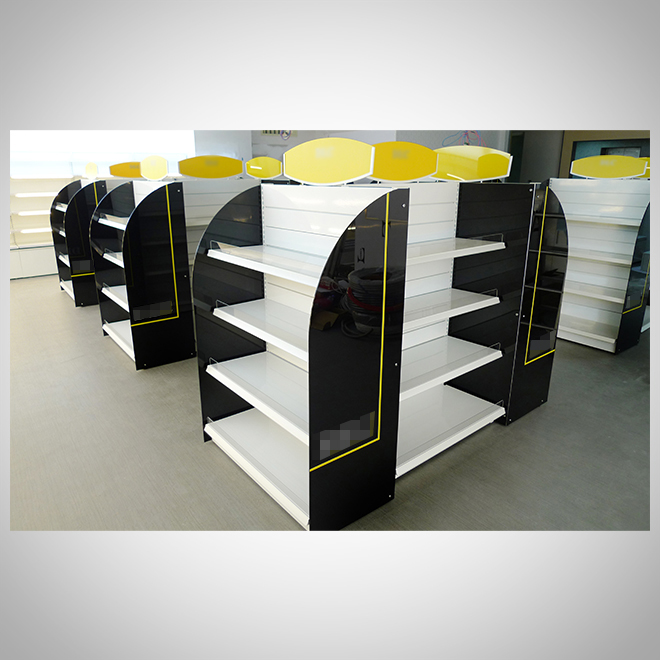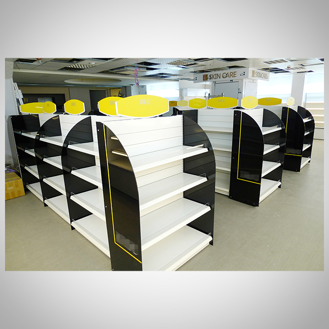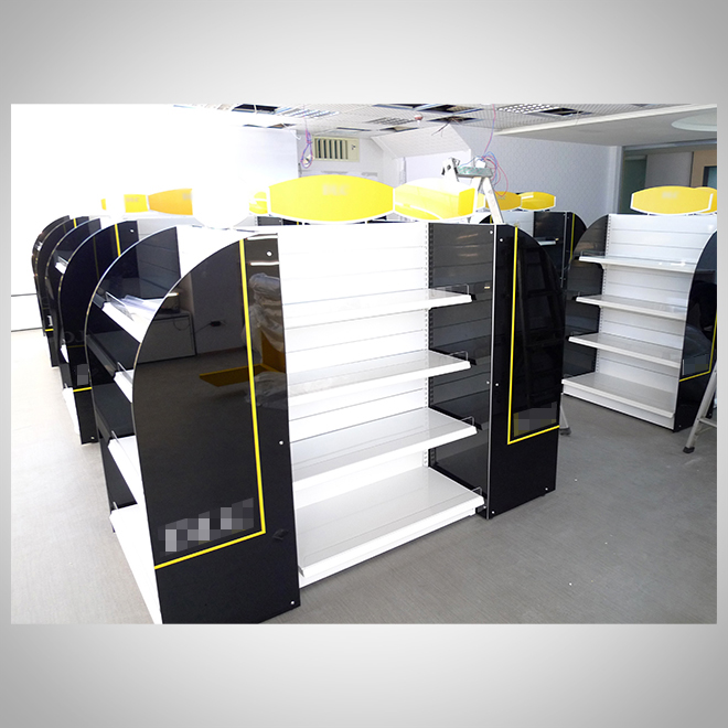 案例介紹:展示架設計應與品牌風格統一,包括色彩、材質、LOGO運用等。