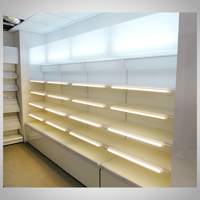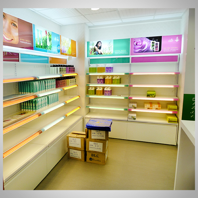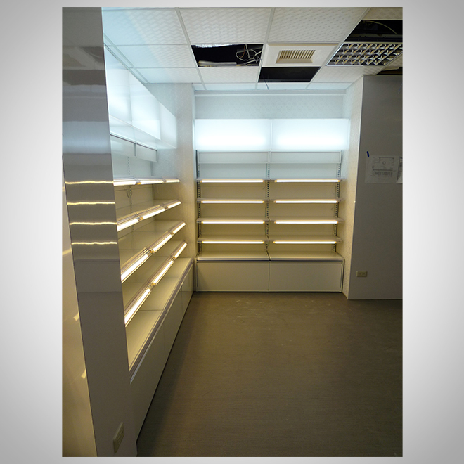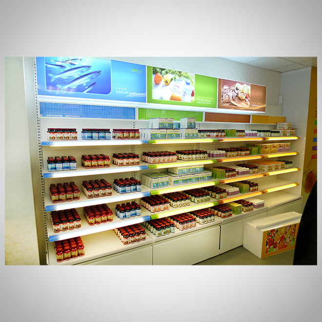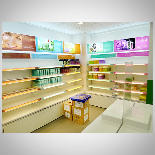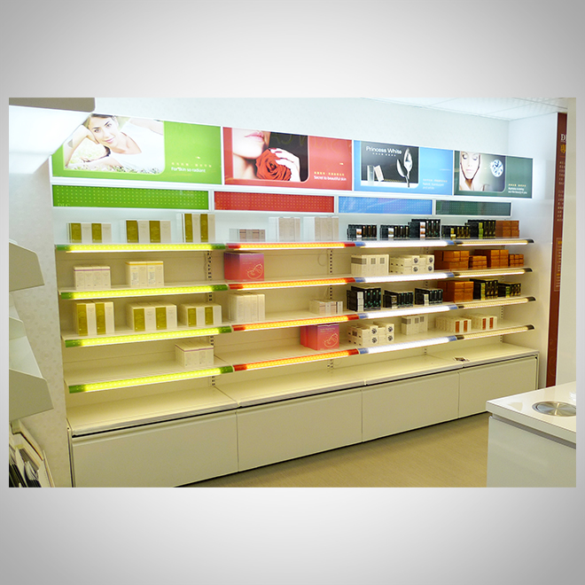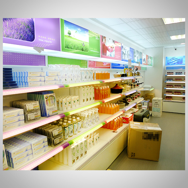 燈光搭配:局部LED點綴,讓品牌與商品更突出。
