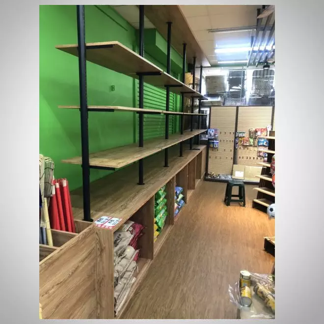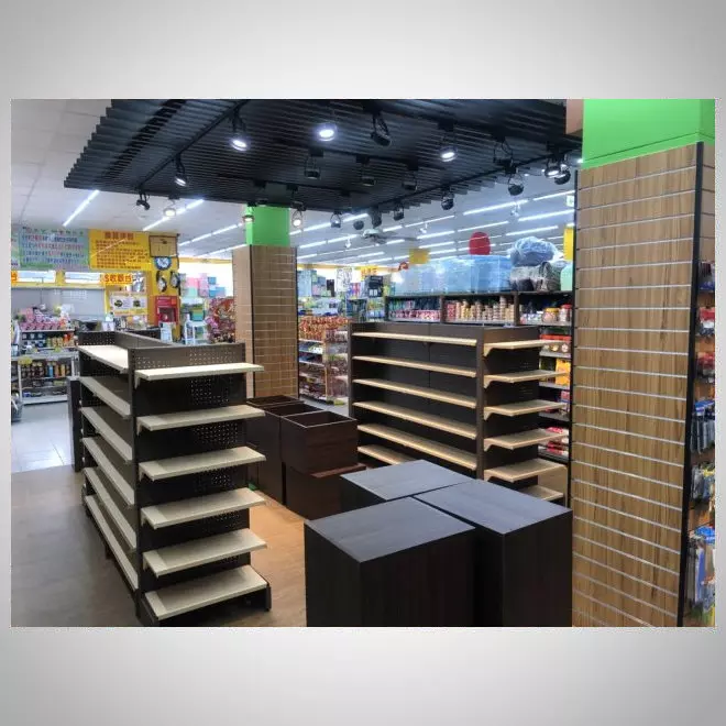 - 嵌入式燈光效果:部分展示架配有嵌入式燈光設計,為商品提供適度照明,增加展示吸引力,營造出明亮、舒適的購物環境。