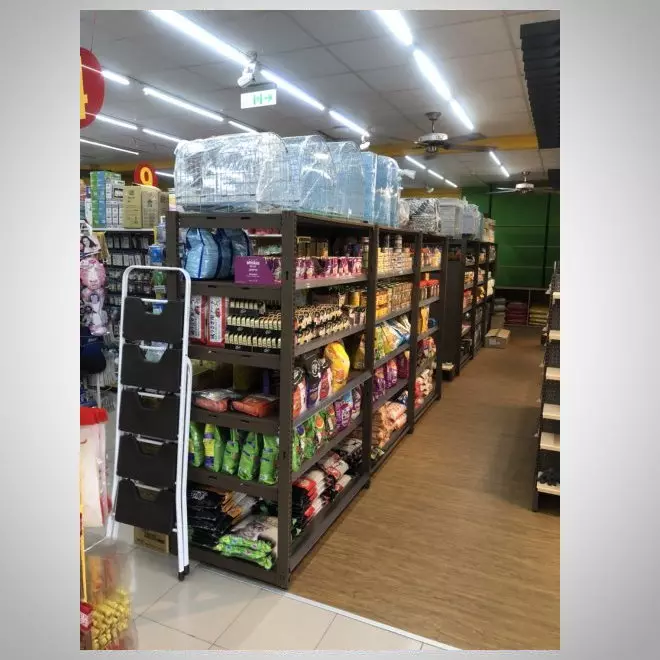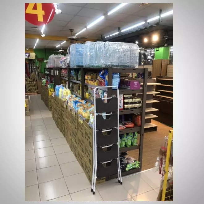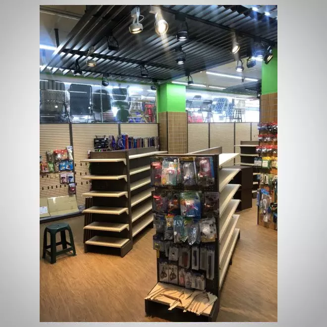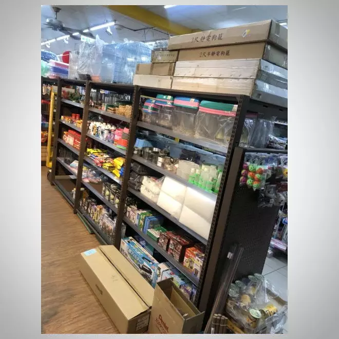 生活百貨展示架是賣場中的陳列主角,以實用與美觀兼具的設計來呈現各類日常用品,無論是廚房小工具、居家收納、還是小型電器,都能在這些展示架上井然有序地呈現。