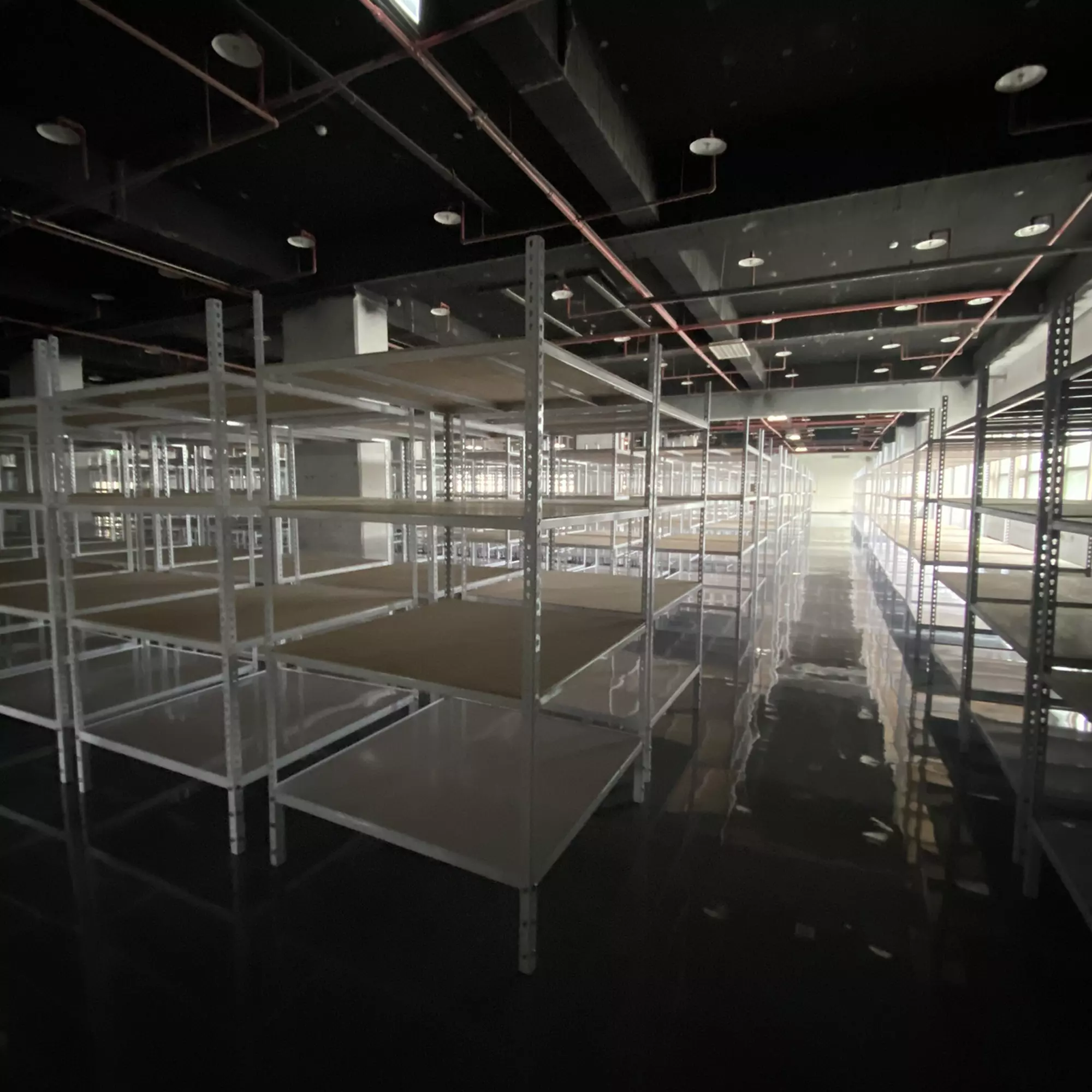貨架結構採 模組化設計,具備高強度金屬架體與標準化層距配置,可配合 AGV 作業需求進行規劃。整齊一致的架體排列不僅有助於提升空間利用率,也能使倉儲管理與貨位辨識更加清晰。