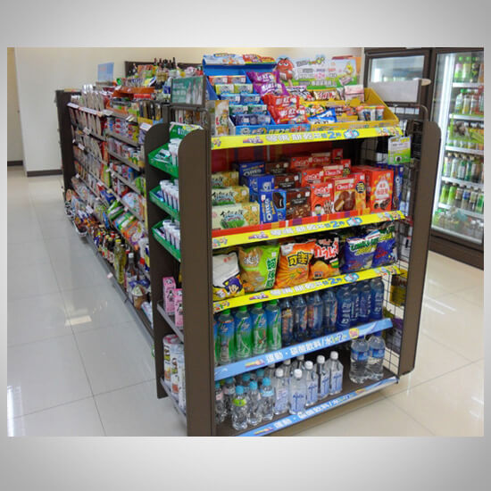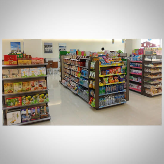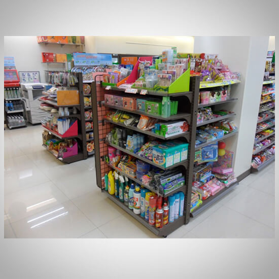 メイクアップラックを備えた新しいコンセプトのコンビニチェーンストア。