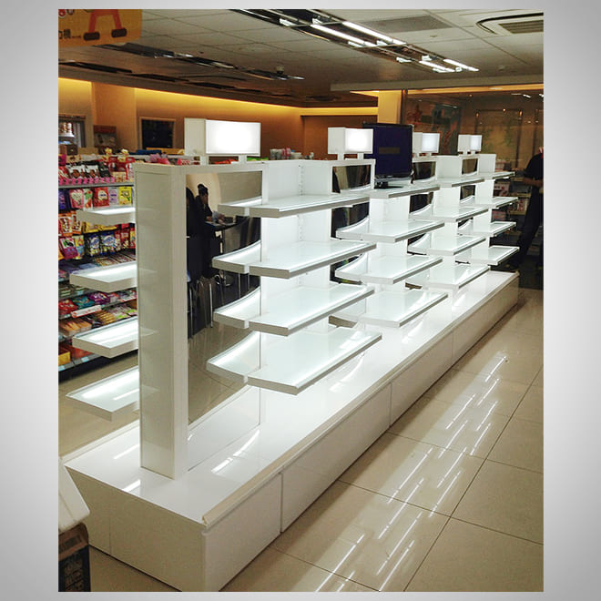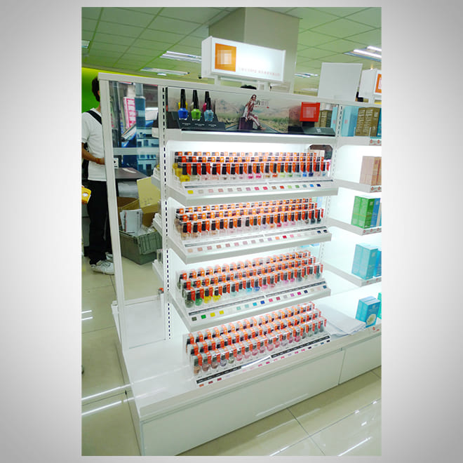 化粧品陳列棚のある有名チェーンコンビニエンスストア。