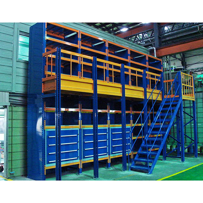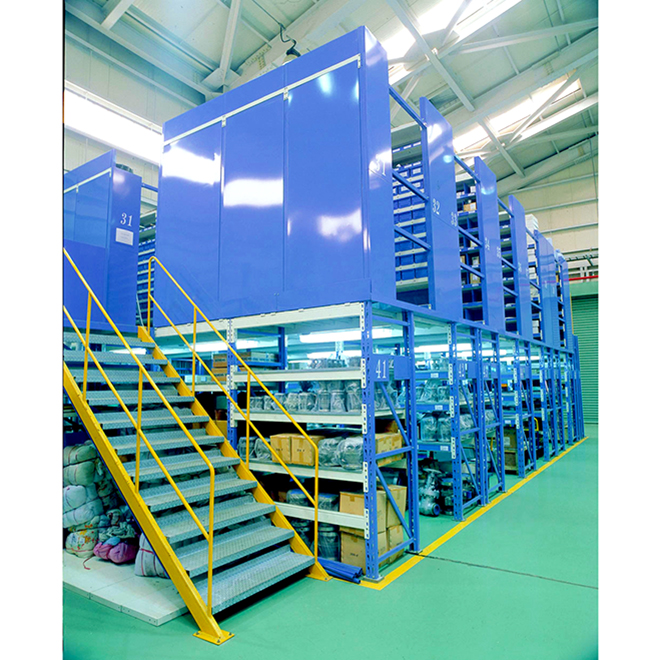 頑丈なパレットラックをベースにして複数のフロアを構築し、保管スペースを増やします。さまざまなニーズに合わせて再編成して使用できます。